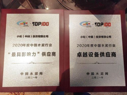 小松(中國)獲頒2020年度中國水泥行業“最具影響力供應商”和“卓越設備供應商”獎